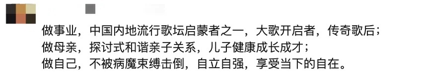在访谈中,她谈到“我从8岁启动献艺,小时候每星期要演两场,在1000多东谈主的剧院里头,自后一直演到48岁了,几十年下来,慢性隐衷很严重,总计这个词脊柱僵直动不了,影响到不可唱歌。”