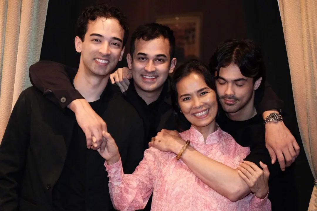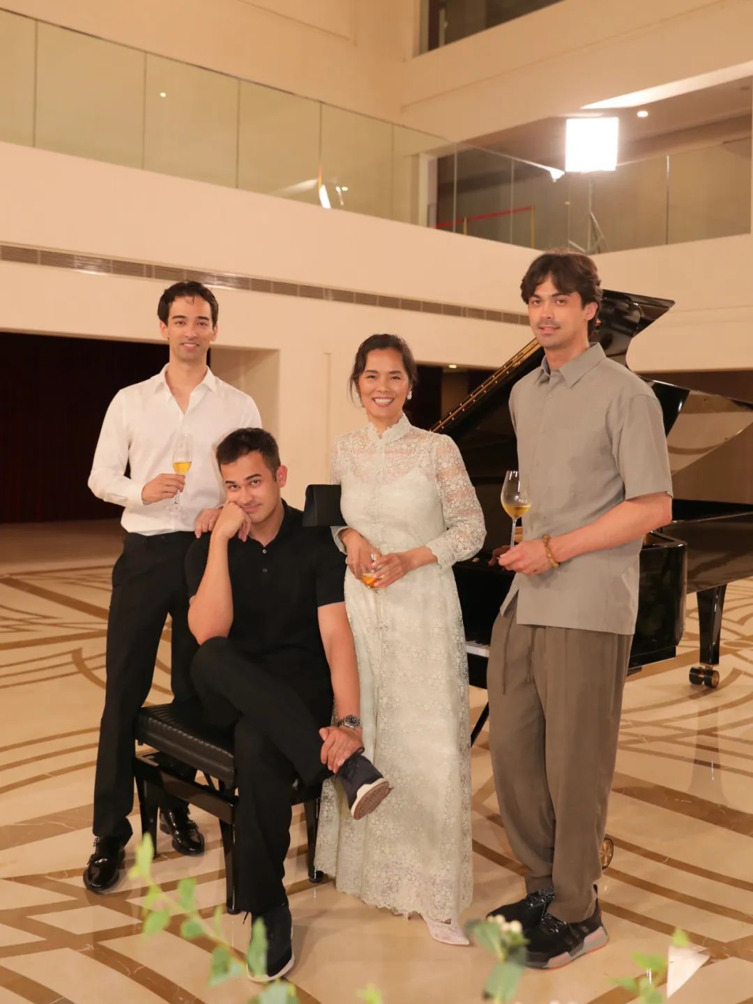 韦唯和三个犬子,在老三韦紫湦的生辰宴上。